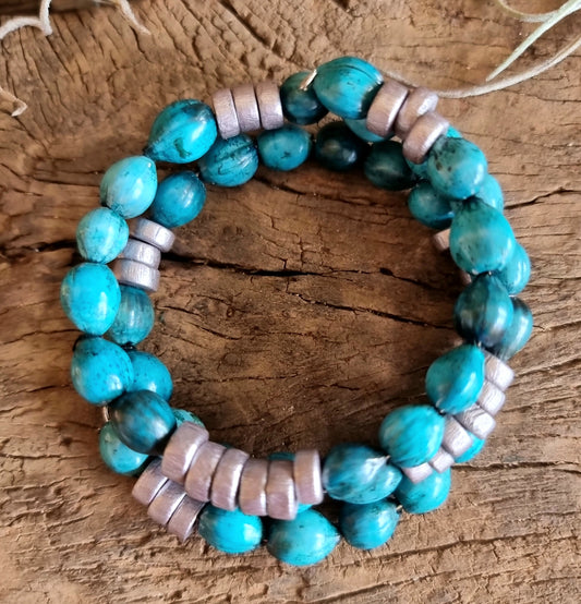 BOHEMIAN BLUE & SILVER MEMORY WIRE BRACELET