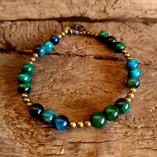 GREEN & BLUE TIGER EYE ANKLE CHAIN - PROTECTION