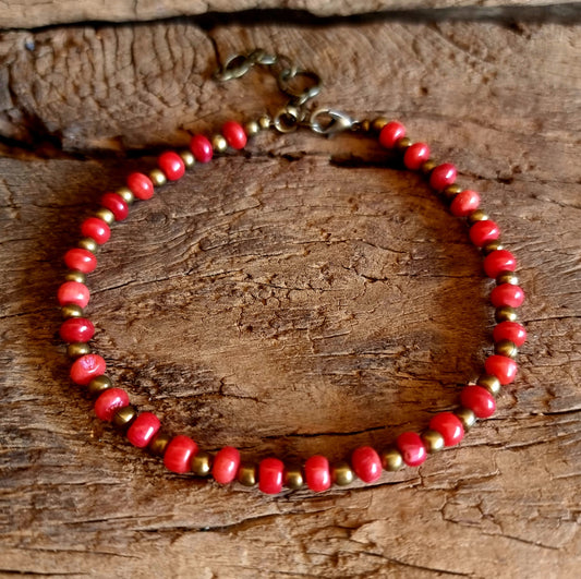 RED CORAL BOHEMIAN ANKLE CHAIN - VITALITY & GOOD FORTUNE