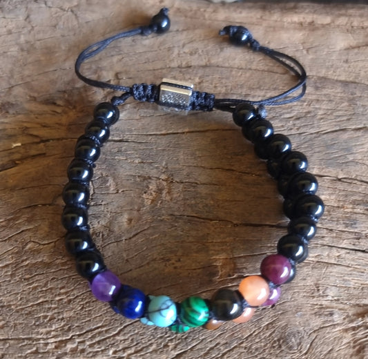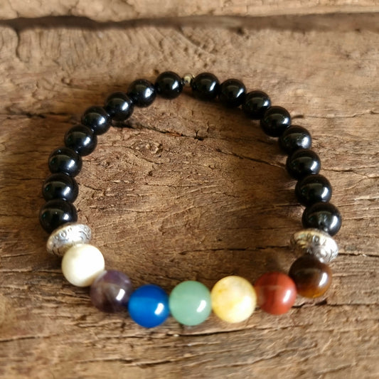 BLACK AGATE 7 CHAKRA BALANCING BRACELET - CHAKRA ALIGNMENT