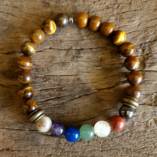 TIGER EYE SEVEN CHAKRA BALANCING BRACELET 8 mm