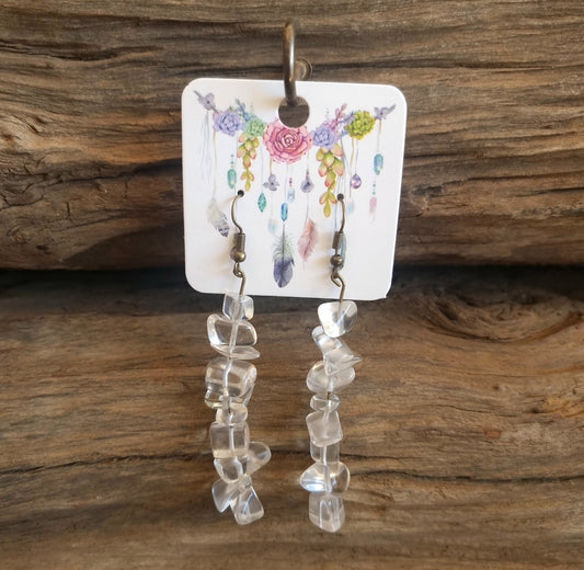 CLEAR QUARTZ CHIPPED EARRINGS 7cm - MASTER HEALER