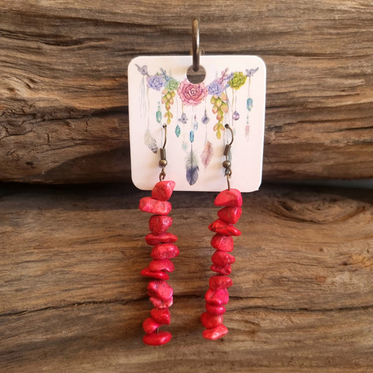 RED HOWLITE EARRINGS 4cm - THE CALMING STONE