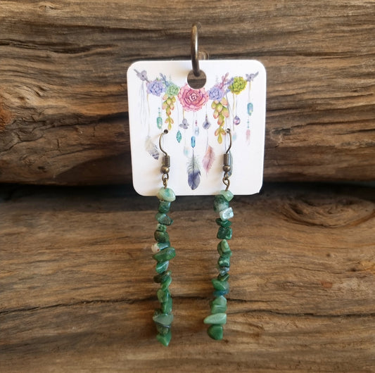 GREEN JADE CHIPPED EARRINGS 7cm - ABUNDANCE