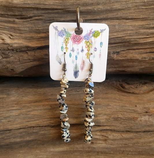 DALMATION JASPER CHIPPED EARRINGS 7cm - GROUNDING