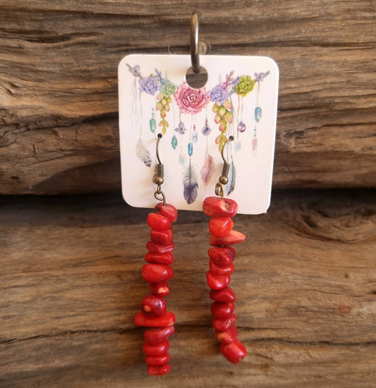 RED CORAL CHIPPED EARRINGS 7cm - VITALITY
