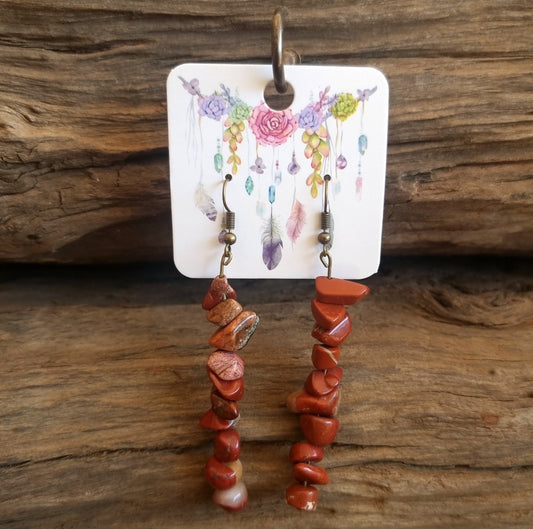 RED JASPER CHIPPED EARRINGS 7 cm - GROUNDING