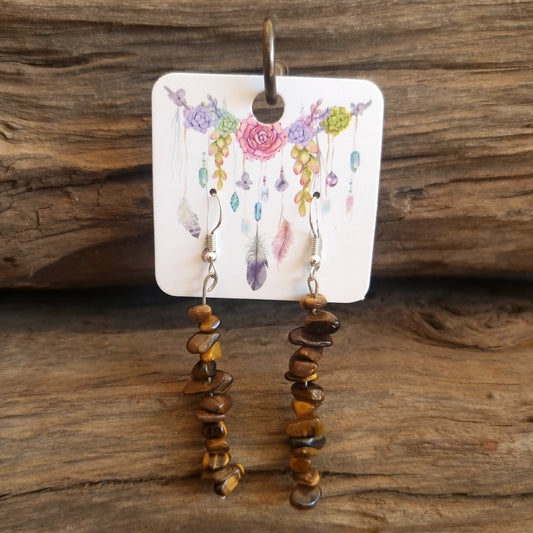 TIGER EYE CHIPPED EARRINGS 7cm - COURAGE