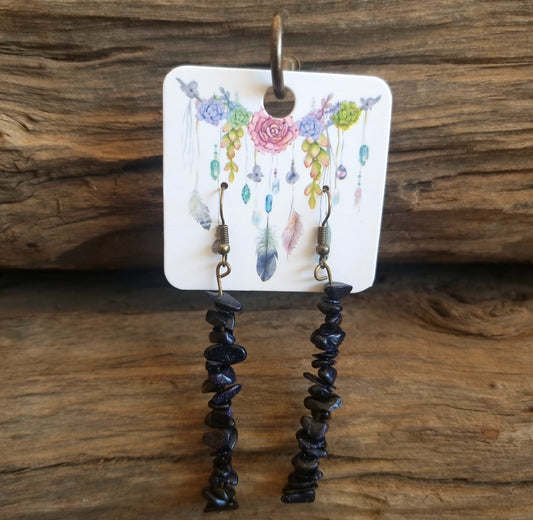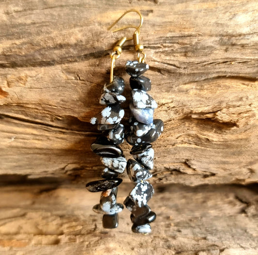 SNOWFLAKE OBSIDIAN CHIPPED EARRINGS 7cm - GRIEVING STONE