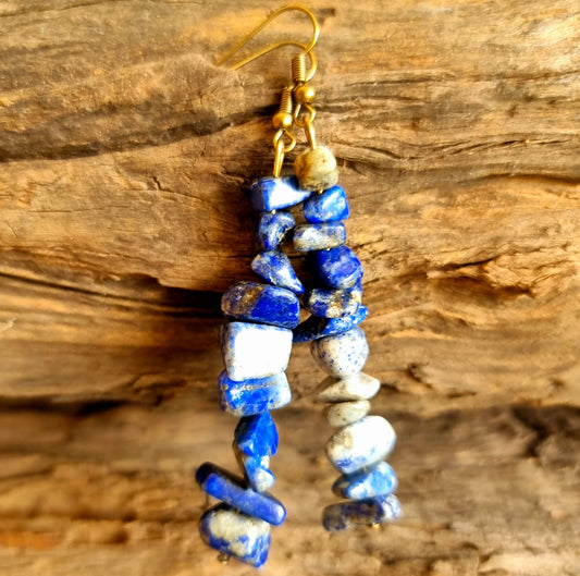 LAPIS LAZULI CHIPPED EARRINGS 7cm - INTUITION