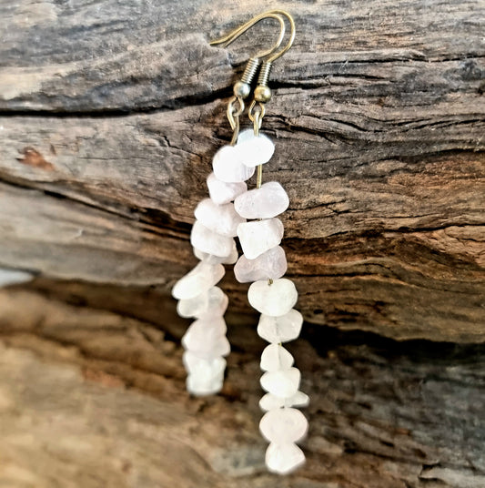 ROSE QUARTZ CHIPPED EARRINGS 7cm - UNIVERSAL LOVE