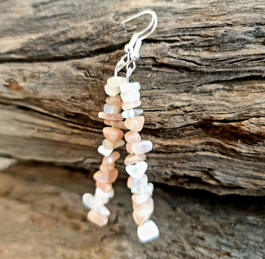 RAINBOW MOONSTONE CHIPPED EARRINGS 7cm - SPIRITUAL HEALING