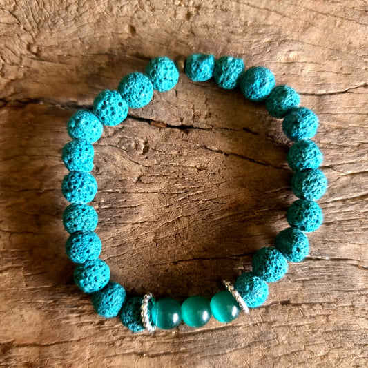 TURQUISE LAVA STONE & CATS EYE ESSENTIAL OIL DIFFUSER BRACELET