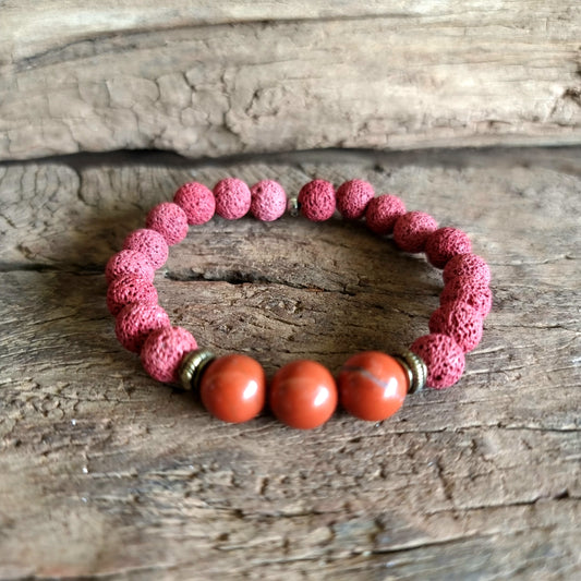 LAVA STONE & RED JASPER ESSENTIAL OIL DIFFUSER BRACELET - GROUNDING