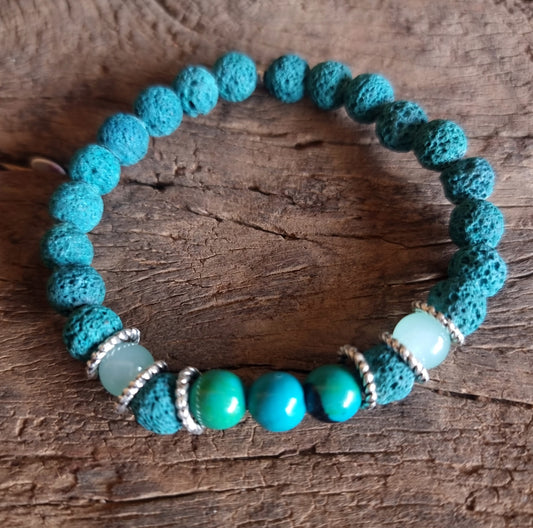 LAVA STONE, CHRYSOCOLLA & GREEN AVENTURINE DIFFUSER BRACELET