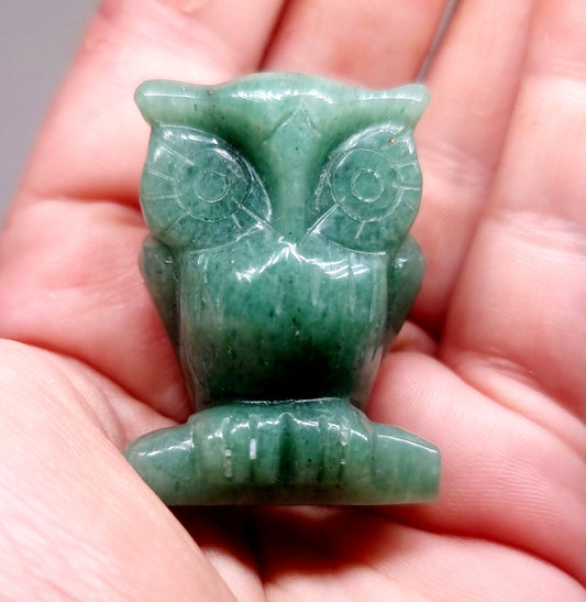 GREEN AVENTURINE CARVED OWL 4 cm - PROSPERITY