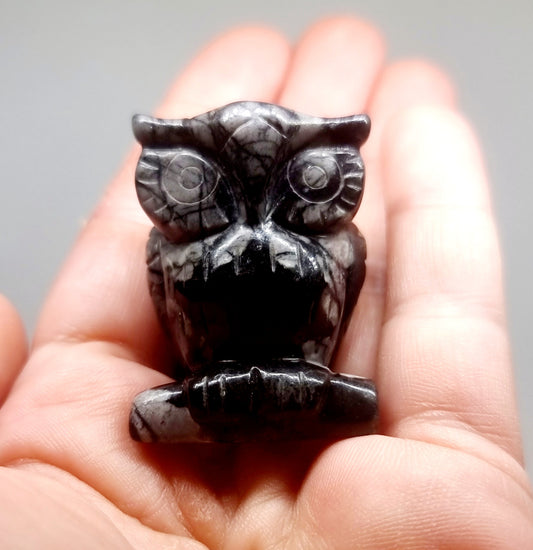 BANDED JASPER CARVED OWL 4 cm - COURAGE & PROTECTION