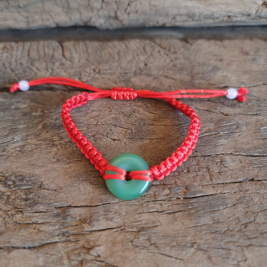 GREEN JADE PEACE BUCKLE RED ROPE WOVEN BRACELET - GOOD FORTUNE