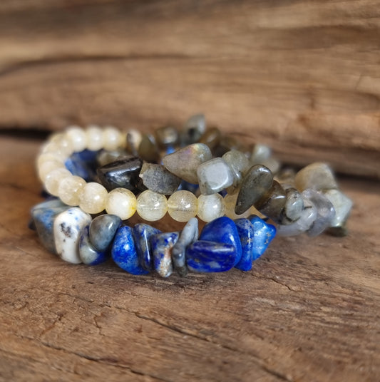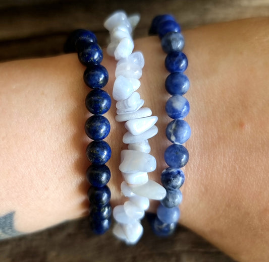 COMMUNICATION BRACELET STACK - BLUE LACE AGATE, LAPIS LAZULI AND SODALITE