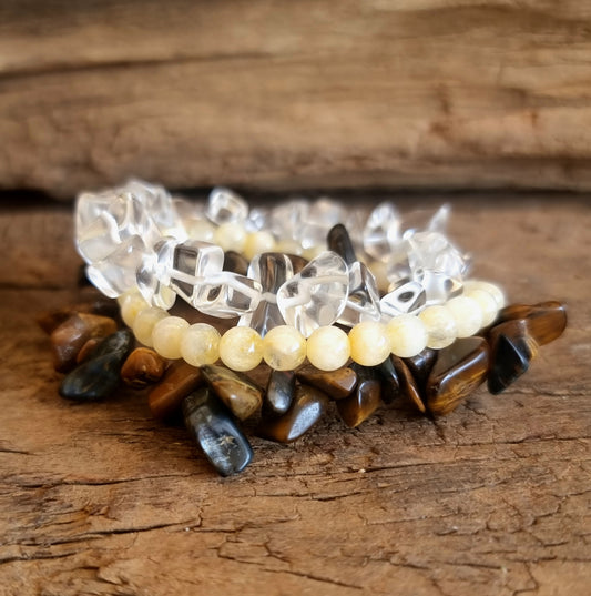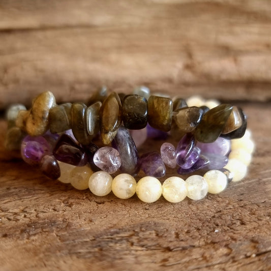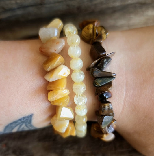PROTECTION & PROSPERITY BRACELET STACK - CITRINE, TIGER EYE & AVENTURINE