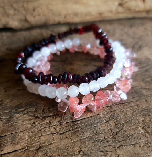 LOVE BRACELET STACK - GARNET, ROSE AND STRAWBERRY QUARTZ