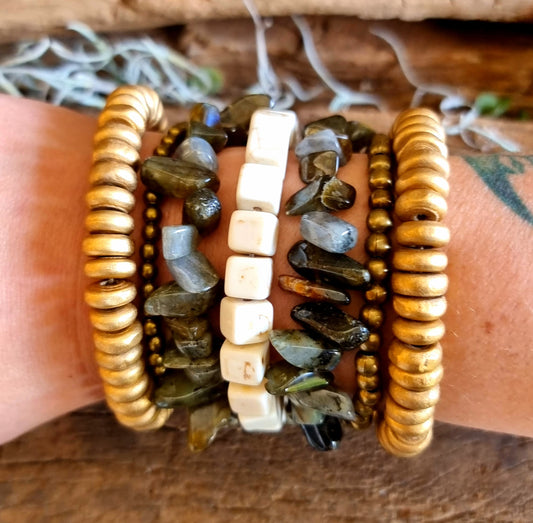 LABRADORITE & HOWLITE BRACELET STACK - CREATIVITY