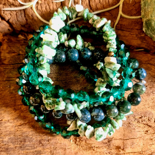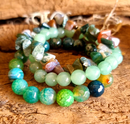 GREEN SPOT STONE & MOSS AGATE BRACELET SET - ABUNDANCE & RENEWAL