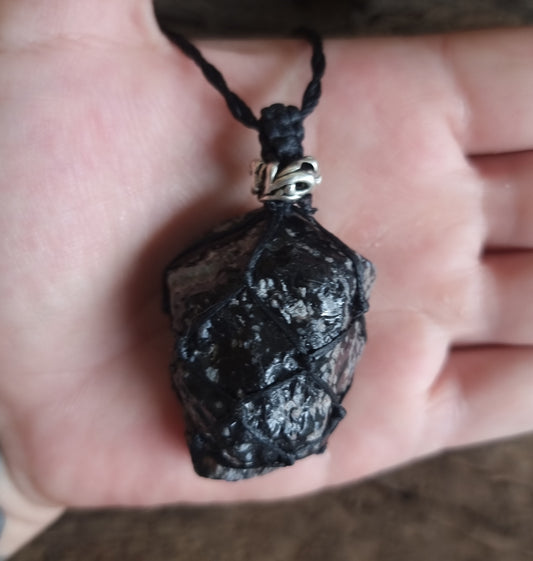 SNOWFLAKE OBSIDIAN ROUGH MACRAME NECKLACE - GROUNDING & BALANCING