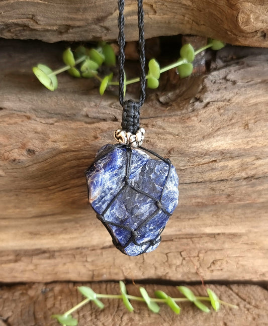 SODALITE ROUGH MACRAME NECKLACE - INTUITION