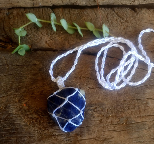 SODALITE TUMBLED MACRAME NECKLACE - INTUITION