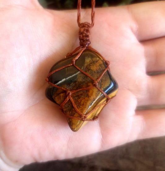 BROWN TIGERS EYE MACRAME NECKLACE - STRENGHT & PROTECTION