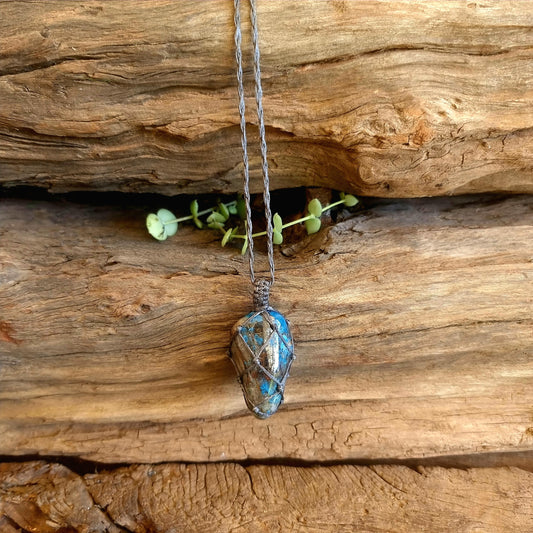 MACRAME CHANGEABLE POCKET STONE NECKLACE