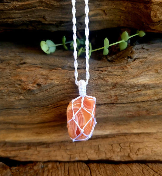 CARNELIAN BANDED AGATE MACRAME NECKLACE - CREATIVITY