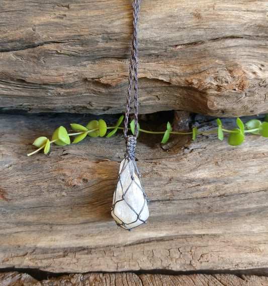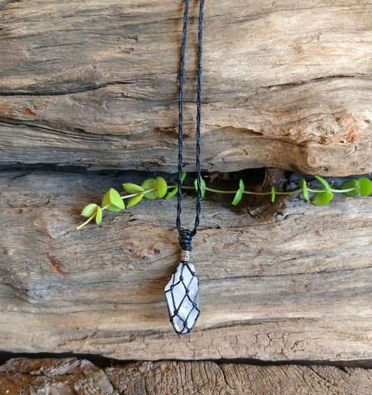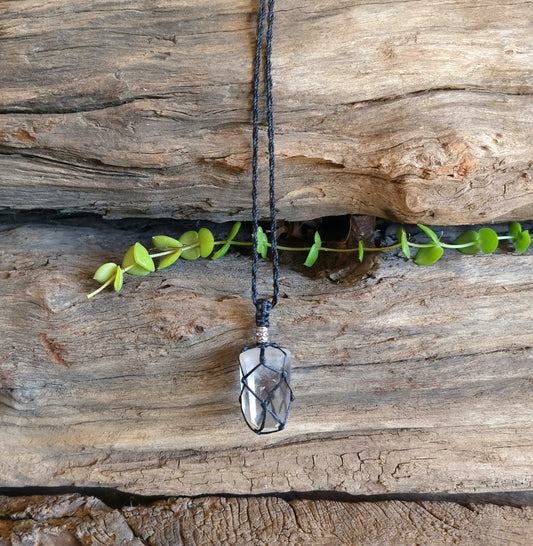 CLEAR QUARTZ ROUGH MACRAME NECKLACE - ENERGY AMPLIFIER