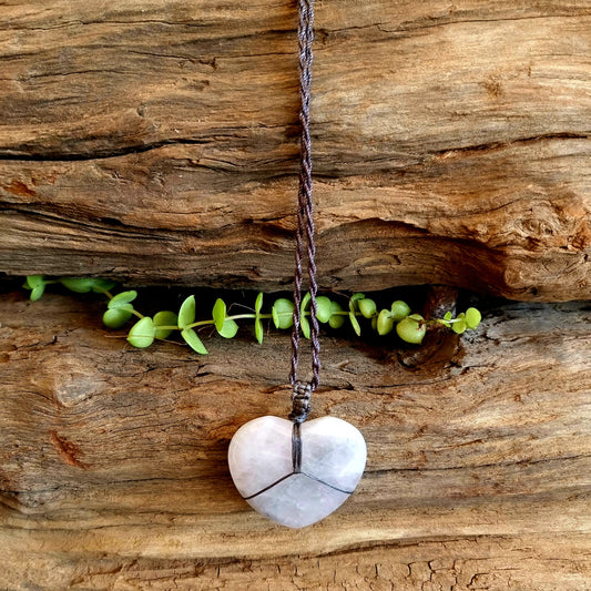 LUNAR QUARTZ MACRAME HEART NECKLACE - LOVE AND TRANSFORMATION