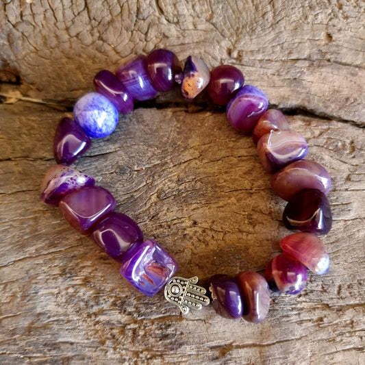 PURPLE AGATE HAMSA HAND NUGGET BRACELET - SELF CONFIDENCE