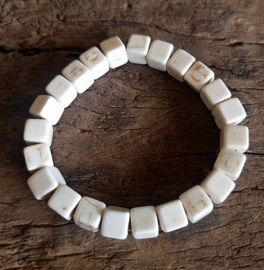 WHITE HOWLITE ENERGY NUGGET BRACELET 12 mm - HIGHER REALMS