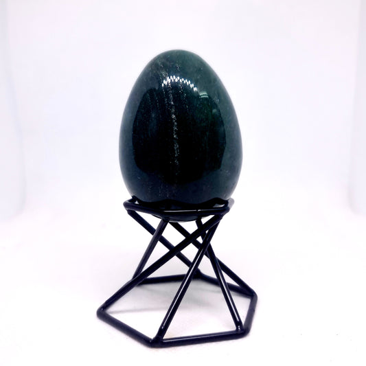 GREEN FUCHSITE QUARTZ POLISHED EGG WITH PYRITE SPECS 164 g - WEALTH & PROSPERITY