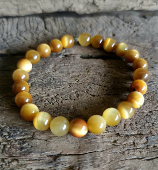 TIGER EYE GOLDEN BROWN ENERGY BRACELET 8 mm - PROTECTION & COURAGE