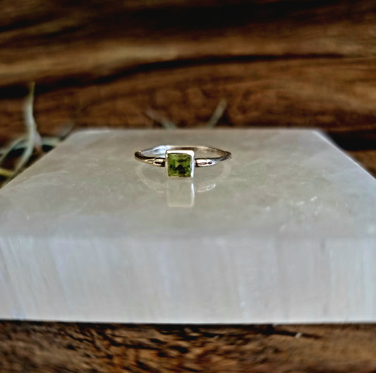 SILVER 925 PERIDOT RING SQUARE SIZE 6 - BALANCE & PROTECTION