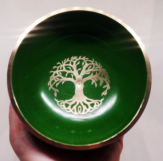 TREE OF LIFE GREEN TIBETAN BRASS SINGING BOWL SML