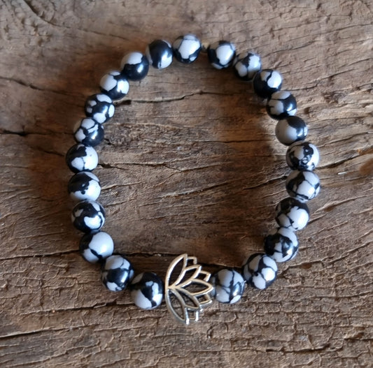 SNOWFLAKE OBSIDIAN LOTUS ENERGY BRACELET 8 mm - GROUNDING