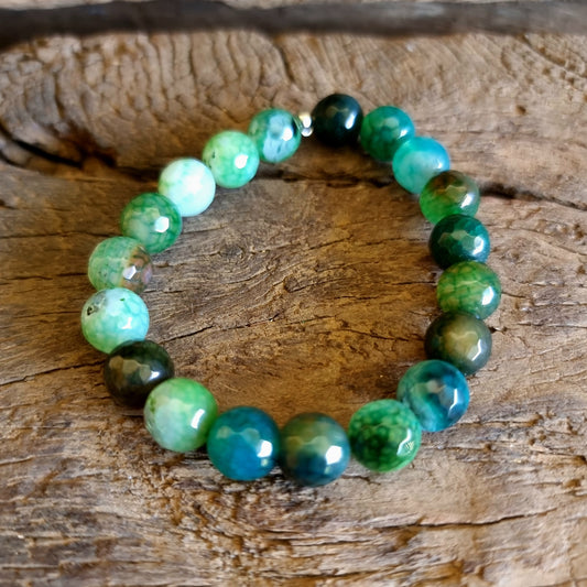 GREEN AGATE FACETED ENERGY BRACELET 10 mm - STRENGHT & CREATIVITY