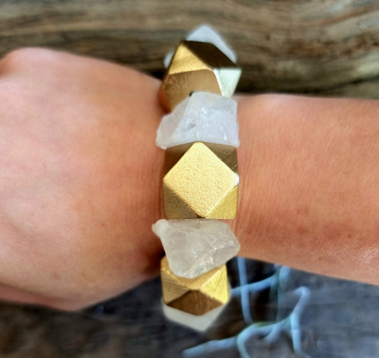 CLEAR QUARTZ ROUGH WITH GOLD BRACELET - ENERGY AMPLIFIER