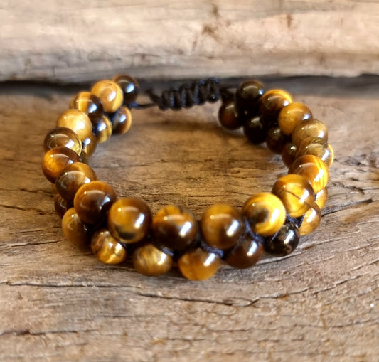 TIGER EYE DOUBLE ROW ENERGY BRACELET 8 mm - PROTECTION & COURAGE