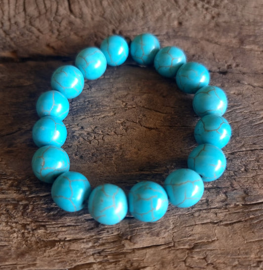 TURQUOISE HOWLITE ENERGY BRACELET 12 mm - GOOD FORTUNE