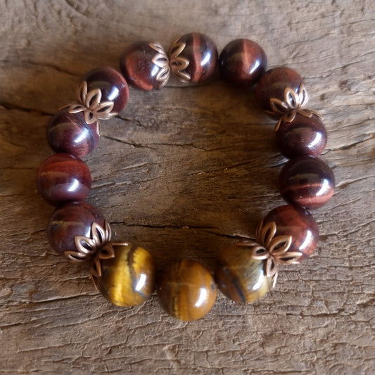 TIGER EYE BROWN & RED ENERGY BRACELET 12 mm - PROTECTION & COURAGE