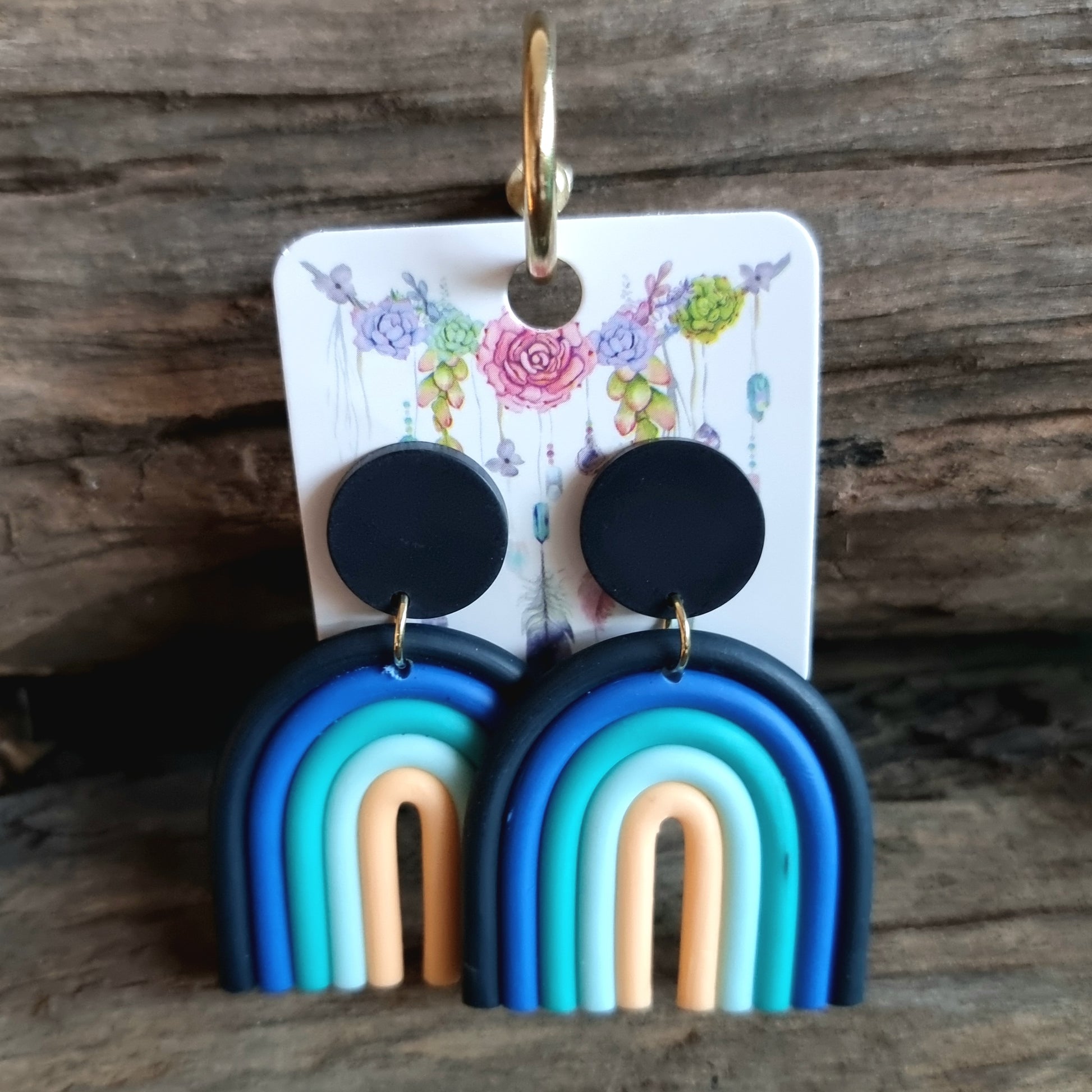 BLACK & BLUE CLAY RAINBOW EARRINGS