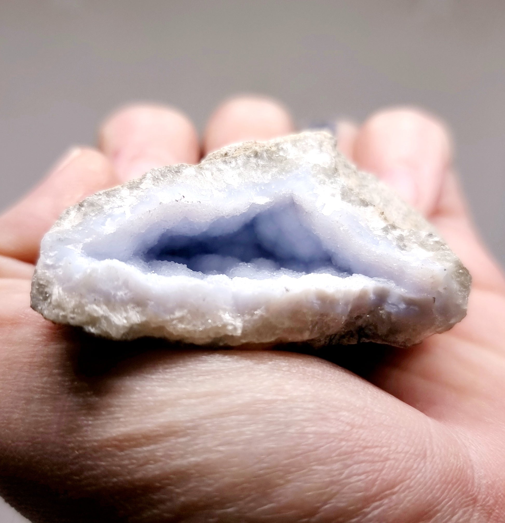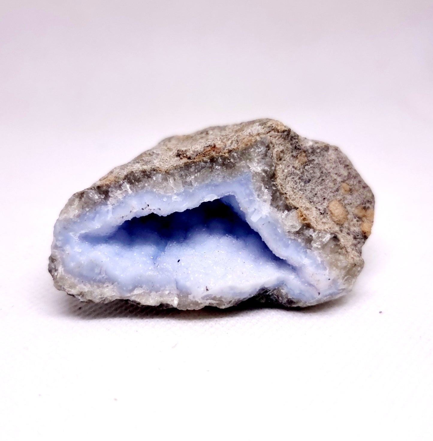 Though soft in appearance, Blue Lace Agate provides strong energetic protection, helping you stay balanced and centered in overwhelming environments. The geode structure amplifies this energy, radiating peace in all directions.
