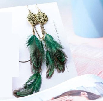 BOHEMIAN FEATHERED GREEN EARRINGS